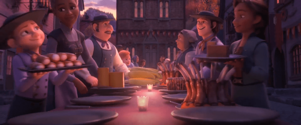 Everything in the moon refers back to the autumn/harvest/plenty theme in Frozen II rather than the themes in Frozen. I would say that the designs of Frozen focuses more on Elsa’s ice, what with the ice castle, the world-ending winter, etc. – even though Anna is the protagonist. Meanwhile, Frozen II‘s design evokes a sense of maturity, which better reflects Anna’s development into queen than Elsa’s discovery of her true place in the world.